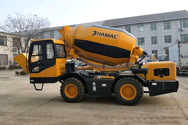 La autohormigonera es compacta en su estructura, y consiste principalmente en un chasis, un motor, un mezclador, un sistema hidráulico, un sistema de suministro de agua, una sala de operaciones, cuatro ruedas y una tolva de pala.